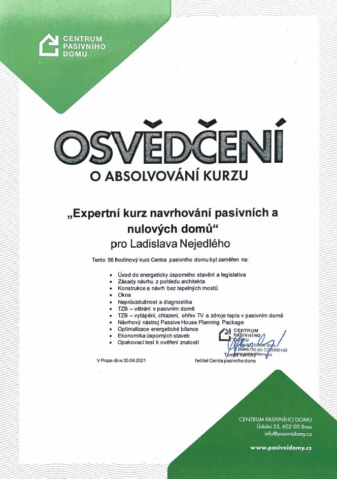 - potvrzuje znalosti optimalizace ceny, konstrukce a energetického hlediska
